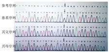 治疗:患儿入院后在原有抗癫痫药物[丙戊酸钠28 mg/(kg·d)、奥卡西平47 mg/(kg·d)、妥泰5.2 mg/(kg·d)]的基础上,加用拉莫三秦[0.2 mg/(kg·d)],为进一步明确诊断,经医院伦理委员会审核,患儿家属签署知情同意书后,行基因检测,结果提示ATP1A3基因c.2116G>A杂合突变(图3),导致p.G706R的氨基酸改变,为国内已报道的致病性突变,与儿童交替性偏瘫相关,支持生物学意义致病,为(家系)经双亲验证的新发变异。确诊后加用氟桂利嗪2.5 mg每晚1次口服,患儿发作频率、持续时间均有减少,随访8个月,截止投稿前氟桂利嗪逐渐加量至2.5 mg每早1次、5 mg每晚1次口服,逐渐减停奥卡西平,截止投稿前患儿已4个月未再发作,运动和语言发育也在稳步提升。