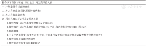 | 三、曾有结直肠癌癌前疾病者(如结直肠腺瘤、溃疡性结肠炎、克罗恩病、血吸虫病等) |