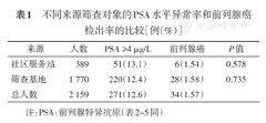 | 来源 | 人数 | PSA ≥4 μg/L | 前列腺癌 | P值 |