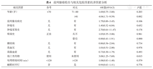 | 前列腺炎病史 | 无 | 有 | 2.02(1.55~2.63) | <0.001 |