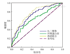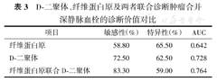 D-二聚体、纤维蛋白原及两者联合诊断肿瘤合并深静脉血栓的诊断价值对比