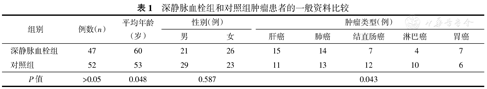 深静脉血栓组和对照组肿瘤患者的一般资料比较