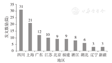 按地域发文数量排序,排名前10位的省市发文情况见图2。通过对发文地区的分布,了解我国日间病房在各地区的开展情况。以第一作者所在单位地区为准进行汇总分析,132篇文献来自我国21个省、直辖市、自治区,显示出地域分布上的广泛性;其中,四川、上海两地发文量较多,共52篇,占文献总量的39.39%;10省市共发表文献112篇,占文献总量的84.85%。