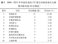 2000-2015年中国发表的132篇日间病房相关文献期刊排名前10位情况