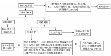 因此,慢性HBV携带状态和非活动HBsAg携带状态的患者均建议每6~12个月进行血常规、生物化学、病毒学、甲胎蛋白、腹部超声和肝纤维化无创诊断技术等检查,必要时进行肝活组织检查,若符合抗病毒治疗指征,及时启动治疗。