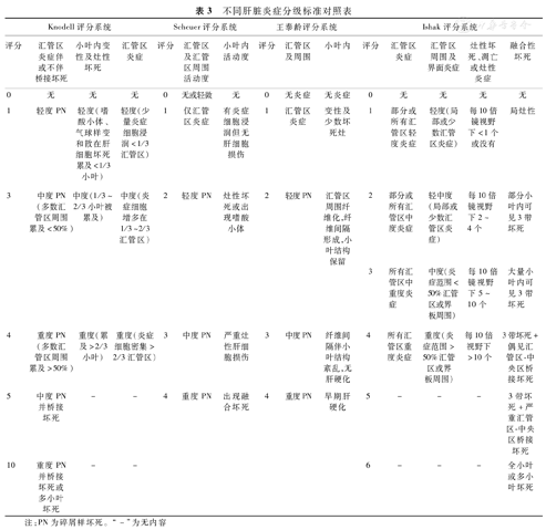 不同肝脏炎症分级标准对照表