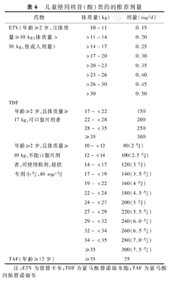 儿童使用核苷(酸)类药的推荐剂量