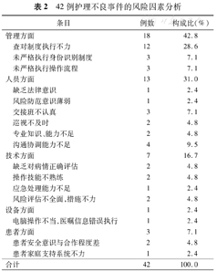 42例护理不良事件的风险因素分析
