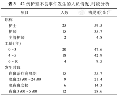 42例护理不良事件发生的人员情况、时段分析