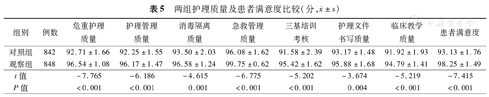 | 组别 | 例数 | 危重护理质量 | 护理管理质量 | 消毒隔离质量 | 急救管理质量 | 三基培训考核 | 护理文件书写质量 | 临床教学质量 | 患者满意度 |