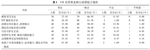 | 讲课会突出重点、讲清难点 | 40 | 33.90 | 60 | 50.85 | 16 | 13.56 | 2 | 1.69 |