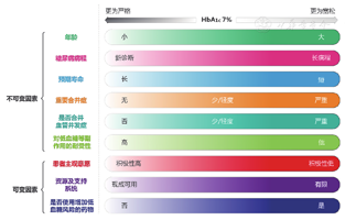 | 4. HbA1c目标值应根据患者的病程进展和病情变化情况,及时进行调整,以维持风险与获益的最佳平衡 |