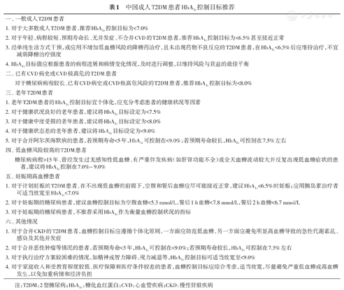 | <6.5 | 年轻、病程较短、预期寿命长、无并发症、不合并CVD的T2DM患者;计划妊娠的糖尿病患者 |