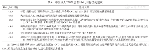 现将不同特征成人T2DM患者的HbA1c目标值分层推荐总结于表4。
