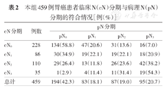 本组459例胃癌患者临床N(cN)分期与病理N(pN)分期的符合情况[例(%)]
