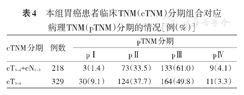 本组胃癌患者临床TNM(cTNM)分期组合对应病理TNM(pTNM)分期的情况[例(%)]