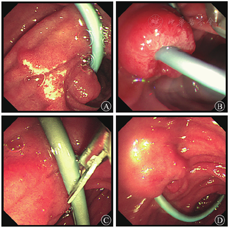 近年来十二指肠乳头肿瘤内镜下切除术日渐成熟,但存在较高风险,术后有肿瘤残留,且术后并发症发生率或复发率较高,是否追加外科手术仍存在争议。现报道1例行改良十二指肠乳头肿瘤内镜下切除术患者,术前通过超声胃镜评估有无胆胰管内生性生长,术中于胆胰管内放置鼻胆引流管改造的长支架预防术后并发症,术后根据病理结果组织多学科讨论,旨在为十二指肠乳头肿瘤的规范化治疗提供参考。
