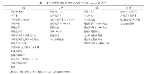 手术患者静脉血栓栓塞症风险评分表(Caprini评分)[12]