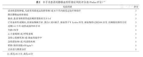 非手术患者的静脉血栓栓塞症风险评分表(Padua评分)[13]