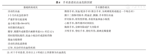 注:对于手术患者,存在以上1项或以上因素即为出血高危