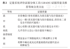 定量系统评价证据分级工具(GRADE)证据质量及推荐等级分类方法