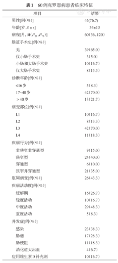 60例克罗恩病患者临床特征