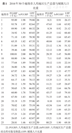 2016年50个地级市人均地区生产总值与城镇人口比重