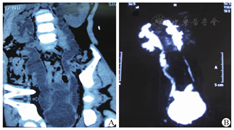 25例气膀胱Cohen组及全部改良乳头式再植术组病例,术后4~8周拔除双J管时同时行膀胱造影(图3)。改良乳头式再植组只发现2例有反流,但拔管前后并无泌尿系感染症状,查尿常规正常,而且3个月后再次造影检查均发现反流消失,考虑是大年龄儿童置入6F双J管,刚拔管时输尿管末端尚处于开放状态所致,而经过一段时间正常收缩后造影无反流。所有病例输尿管扩张均有减轻、部分恢复正常(图4),说明效果可靠,输尿管包埋在膀胱壁内1~1.5 cm没有梗阻表现。