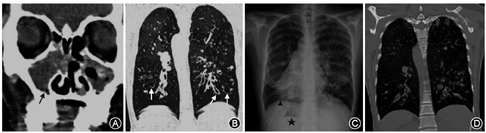 KS是一种罕见的常染色体隐性遗传性疾病,主要表现为支气管扩张、内脏逆位、慢性鼻窦炎[1]。具备前两项为不完全性,3项均具备则为完全性。国内鲜有统计报道,而国外认为其发病率为1∶20 000~1∶80 000,并有家庭遗传倾向[2,3],还可能伴有不孕不育及其他畸形。鼻窦的手术治疗和局部用药能改善其生活质量[4]。
