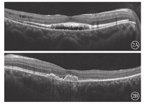 目前对于ARB只能针对症状进行治疗。本例患者左眼并发CNV,给予玻璃体腔注射抗VEGF药物治疗后患者自觉视物变形症状消失,视力恢复至1.0。