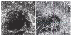 本例患者的诊治经验提示临床,对于闭角型青光眼的年轻患者,除检查房角外,还应观察眼底并进行相应的影像检查,以早期发现ARB。对已诊断为ARB者,随访中注意观察眼压并及时发现CNV,尽量保全患者视力。
