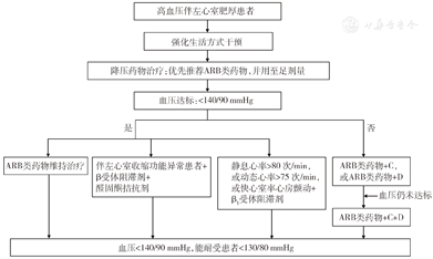 4.高血压合并LVH患者的降压目标为血压<140/90 mmHg,能耐受者血压<130/80 mmHg。