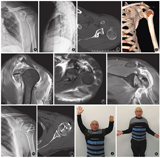 术后第2天,肩关节正位X线片(图1H)和CT(图1I)示肱骨头和肩胛盂对合正常,大结节骨折复位良好。术后肩关节外展支具固定患肢于外展30°、旋转中立位6周。术后第1天即行患侧腕关节及肘关节主动活动。术后6周,X线片示盂肱关节对合良好,骨折线模糊。而后开始行肩关节主动活动。术后10个月随访,患侧肩关节功能恢复良好,肩关节上举接近健侧(图1J),体侧外旋轻度受限(图1K)。肩关节Constant功能评分85分。
