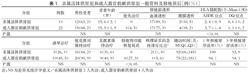 注:NS为差异无统计学意义,a亲属活体供肾组2人失访,成人器官捐献供肾组4人失访