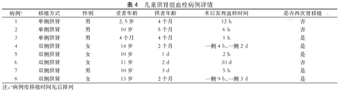 | 4 | 双侧供肾 | 女 | 14岁 | 2个月 | 一侧4 h、一侧2 d | 是 |