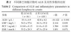 不同淋巴细胞计数时ALB及炎性参数的比较