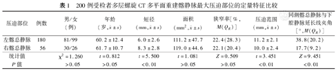 200例受检者多层螺旋CT多平面重建髂静脉最大压迫部位的定量特征比较