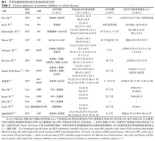 | Zhou等[17] | Case | GHD | GH+来曲唑 | CA:15.0 BA:13.5 | 17个月 | PAH:175.3 H:168.0 |