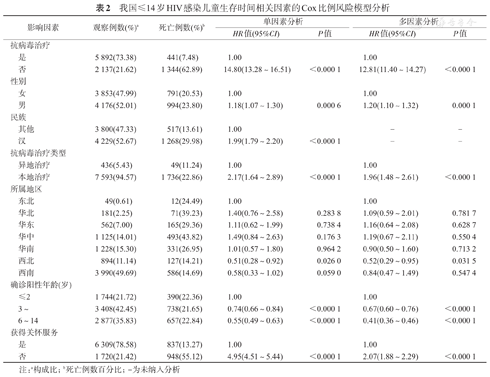 我国≤14岁HIV感染儿童生存时间相关因素的Cox比例风险模型分析