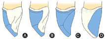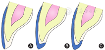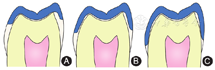 贴面(蓝色)类型 A:经典型;B:部分包绕型;C:全包绕型