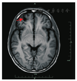 病例2,男,28岁,浙江仙居人,与病例1系朋友,因"反复发热、腹痛1月余,咳嗽3 d"于2019年7月17日与病例1一同入院。患者1个月前出现发热,体温约38℃,有腹痛,部位不固定,游动于上腹、下腹部,症状持续10 d不能缓解,于当地医院就诊,予头孢和青霉素抗感染治疗,体温正常,腹痛稍缓解,5 d前再次出现发热,体温达39.6℃,伴有多汗,曾有腹泻,无恶心、呕吐,3 d前出现咳嗽,稍感气急,无咳痰、咯血,为进一步治疗来我院就诊,门诊拟"发热待查"收治入院。体格检查:体温38.8℃,脉搏102次/min,呼吸20次/min,血压112/67 mmHg。神志清,精神可,皮肤巩膜无明显黄染,未见皮疹及皮下出血,浅表淋巴结未及,双肺呼吸音清,未闻及干湿啰音。心肺听诊未闻及病理性杂音。腹部平坦,上腹部压痛、无反跳痛。肝脾肋下未及,移动性浊音阴性。四肢肌力及张力正常,神经系统查体阴性。血常规示白细胞计数13.3×109/L,嗜酸性粒细胞占比0.454,嗜酸性粒细胞6.03×109/L,血红蛋白115 g/L,血小板344×109/L。超敏CRP 121.0 mg/L,ESR为4 mm/1 h。胸部CT示右肺及左肺下叶炎症,两肺数枚小结节,右侧气胸。头颅CT示两侧额叶软化灶(图2)。肝脏CT示肝脏肿大,肝内多发类圆形低强化区,多发炎性结节形成,盆腔积液。追问病史发现,与病例1曾于48 d前生食野生螃蟹,查血并殖吸虫抗体阳性。诊断:并殖吸虫病(腹型+肺型+脑型)。予吡喹酮片25 mg/kg,2次/d,口服3 d治疗后体温恢复正常,腹痛、咳嗽缓解出院。出院约1周后再次出现发热,继续使用吡喹酮治疗后3 d体温正常,于1个月后在当地医院复查血白细胞计数9.6×109/L,嗜酸性粒细胞占比0.349,嗜酸性粒细胞3.34×109/L,血红蛋白110 g/L,血小板计数369×109/L。肺部CT提示病灶较前吸收,气胸消失,双侧少量胸腔积液。2个月后再次复查,各指标均正常。