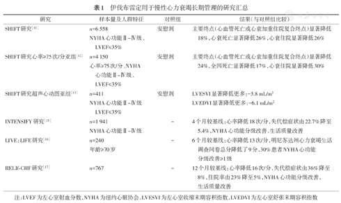 伊伐布雷定用于慢性心力衰竭长期管理的研究汇总