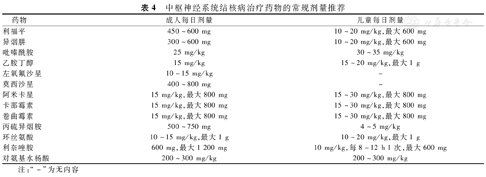 中枢神经系统结核病治疗药物的常规剂量推荐