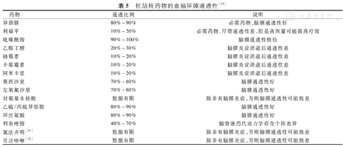 | 对氨基水杨酸 | 数据有限 | 除非有脑膜炎症,否则脑膜通透性可能极差 |