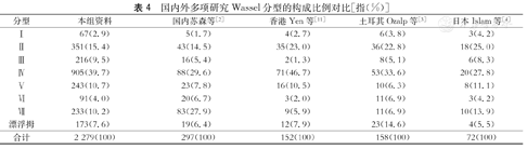国内外多项研究Wassel分型的构成比例对比[指(%)]