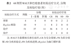 注:MALT为黏膜相关淋巴组织;CR为完全缓解;PR为部分缓解;SD为疾病稳定;PD为疾病进展;H.pylori为幽门螺杆菌