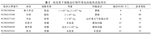 | NCT01902082 | 中国 | 脂肪间充质干细胞 | 1×106/kg | 静脉回输 | 7 d | 12 |