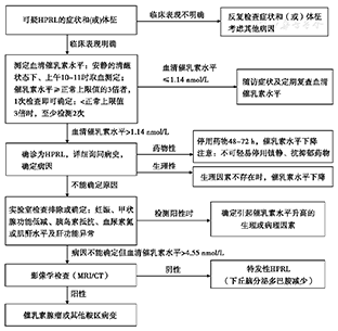 HPRL的诊断包括明确是否存在HPRL和确定引起HPRL的病因。