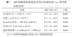 100例晚期卵巢癌患者预后影响因素Cox单因素分析结果