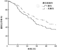 肺转移瘤的切除也应遵循肿瘤外科治疗的两个最大原则,即最大限度的切除肿瘤和最大限度的保留正常的肺组织。(1)手术路径:肺转移瘤的手术路径主要分为常规外侧开胸和胸腔镜切口。全组病例中胸腔镜手术106台,开胸手术223台,5年生存率分别为23.6%和42.6%。随着胸腔镜技术的发展及推广应用,许多学者开始采用胸腔镜切除肺转移瘤[12,13,14],其优点为创伤小,术后恢复快,对肺功能影响小,特别是随着胸腔镜器械的不断改进,目前双孔、单孔胸腔镜手术技术大大提高,甚至是剑突下单孔胸腔镜同期切除双肺转移瘤也已形成可能。然而,还有一部分学者认为,无论何种方法,关键是要能够将转移灶完全切除,一般不主张行胸腔镜[15],因为胸腔镜探查时手无法完全触摸肺组织,容易遗漏转移灶,并且对于有些没有侵及脏层胸膜的转移灶,相对定位闲难,在一定程度上限制了它的临床应用,本组胸腔镜和开胸手术的患者5年生存率差异无统计学意义。(2)手术切除范围:肺转移瘤的手术切除范围主要分为局部切除和非局部切除,局部切除主要包括肺楔形切除、肺段切除和肺肿瘤剜除术,而非局部切除则包括肺叶切除、全肺切除等。本组病例中局部切除194例(59%),非局部切除135例(41%),两组5年生存率分别为41.6%和36.1%,中位生存期分别为48和31个月,局部切除患者预后优于非局部切除患者。Pfannschmidt等[16]系统性回顾了20个结肠癌肺转移的临床研究,发现切除范围不是生存的影响因素,支持进行有限的肺切除,在切缘干净的同时尽量保存肺功能,对肺转移瘤则不适合行全肺切除[17]。而国际肺转移瘤登记组织IRLM[6]的5 206例资料中,行楔形切除、肺段切除、肺叶或双肺叶切除、全肺切除的比例分别是67%、9%、21%和3%,楔形切除可达到与解剖性切除相同的效果。所以,对于外周型肺转移瘤病灶,特别是单发的如能保证切缘阴性尽可能行楔形切除;对于某些易于解剖的较好的肺段(如舌段、背段)也可考虑行肺段切除;至于肺叶切除则主要适合于病变较大或位于肺根部的中心型肺转移瘤;全肺切除则应慎之又慎,术前应仔细的权衡手术利弊。(3)肺门、纵隔淋巴结的清扫:肺门、纵隔的系统性淋巴结清扫是原发性肺癌手术的规范性术式,对于肺转移瘤是否需行淋巴结的清扫则尚存争议。Loehe等[18]认为系统性淋巴结清扫有助于更彻底地切除肺转移瘤,提高患者生存率。本组329例患者中淋巴结清扫者5年生存率为34.1%,未清扫淋巴结者5年生存率则为44.7%(P=0.017),淋巴结清扫组患者预后显著差于未清扫组。一些文献报道显示部分肺转移瘤患者同期存在肺门或纵隔淋巴结转移,但比例不高,本研究组中行淋巴结清扫共162例,其中46例术后病理证实转移,仅占清扫组的28.4%,说明大部分患者在没有转移的情况下进行了无谓地淋巴结清扫,扩大了手术范围,加大了手术创伤。